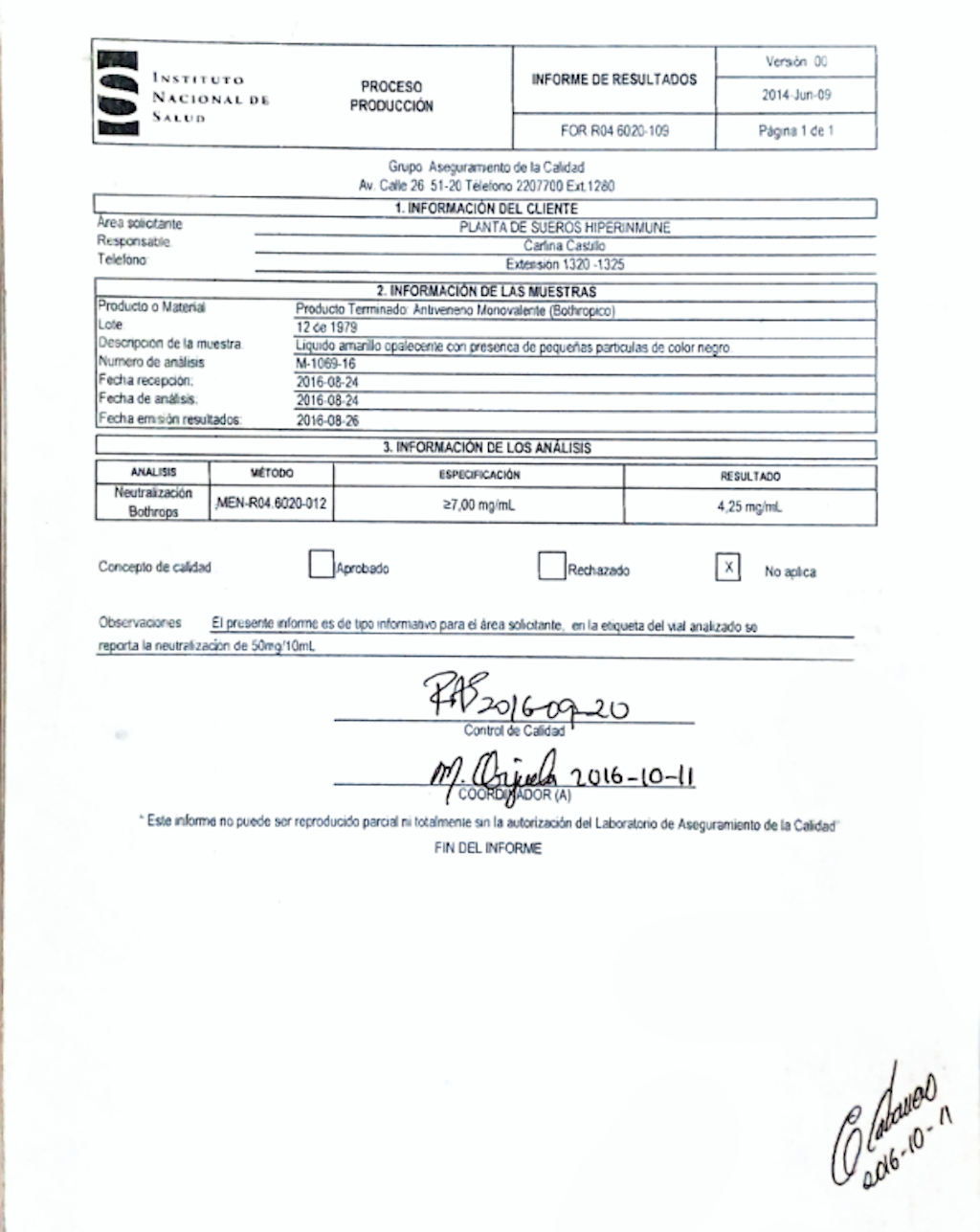 Palabras Claves: Venenos, suero antiofídico, Instituto Nacional de Salud, antivenenos, suero polivalente, suero monovalente, serpientes.​